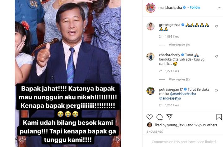 Get Ayah Marisha Chacha Meninggal Background. Ayah chacha marissa meninggal dunia. Ayah dari marisha chacha diketahui meninggal dunia pada jumat (16/10).